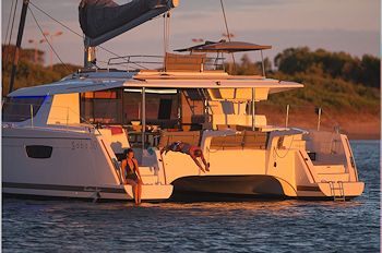 This is a luxurious 2016 50 foot catamaran with five guest cabins. Each queen cabin has a modern pristine en suite bathroom with separate shower stalls. One cabin is accessed through its own cockpit entrance.